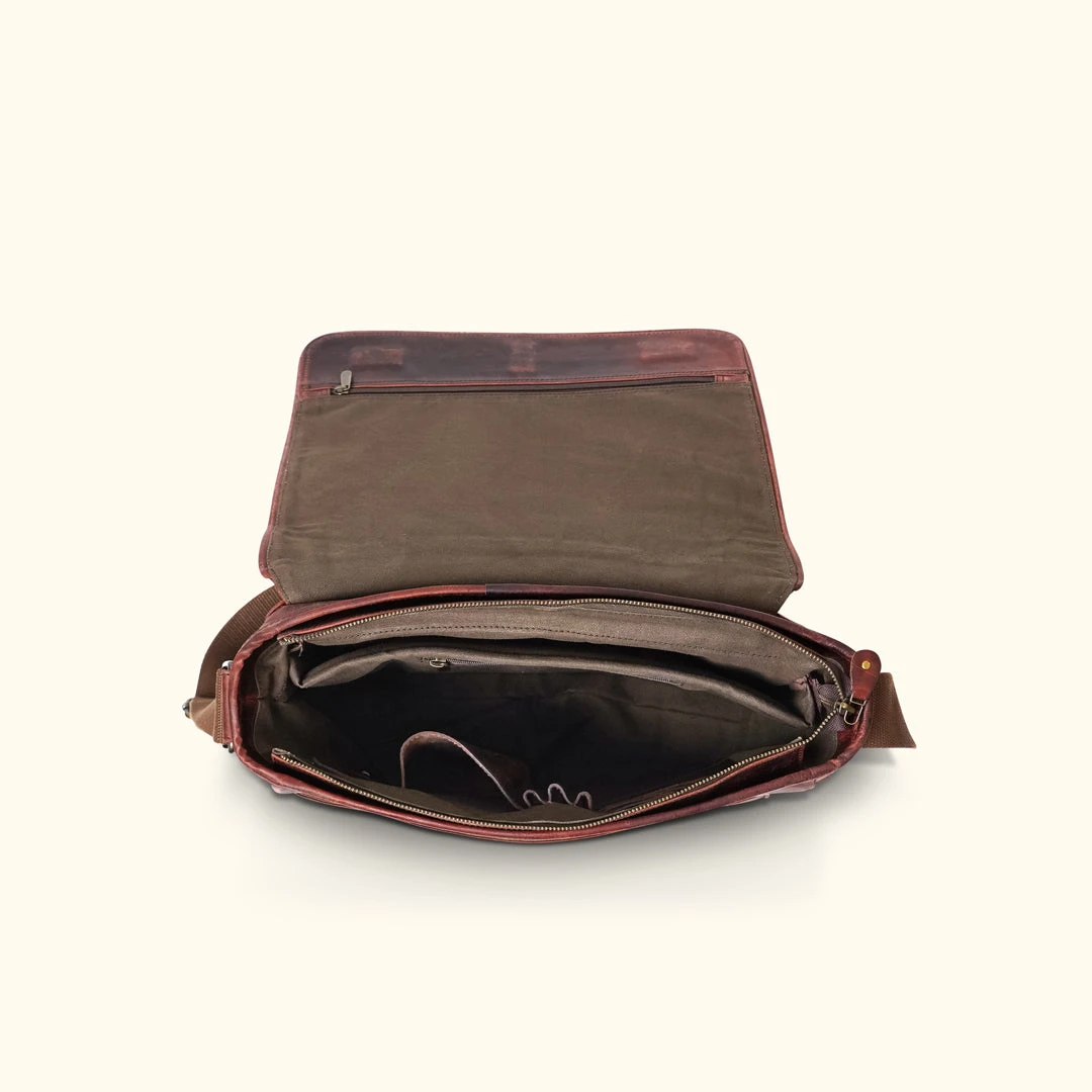 The Roosevelt Leather Satchel is a smaller version of our Vintage Messenger Bag. To carry your leather satchel bag for years to come, remember to clean and care for your leather every few months to prevent cracking or buildup.