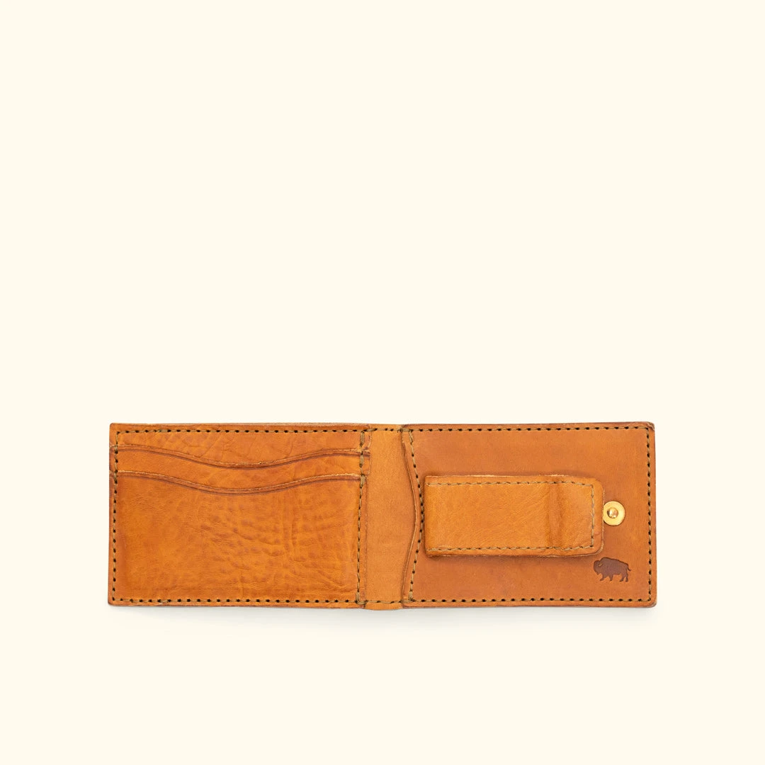 Our Dakota Bifold Money Clip Wallet has an ID window and sufficient slots for cash or cards, all stitched in a top grain leather package offered in a rugged distressed tan color. But why stop there? On the outside, we’ve added a money clip that comes in two options – a metal clip or a magnetic clip. Both are more than up to the task of securely holding your cash, you just get to pick which one you prefer. So ditch that file folder you’ve been sitting on for too long and join the ranks of the new and improved. It’s really quite simple.