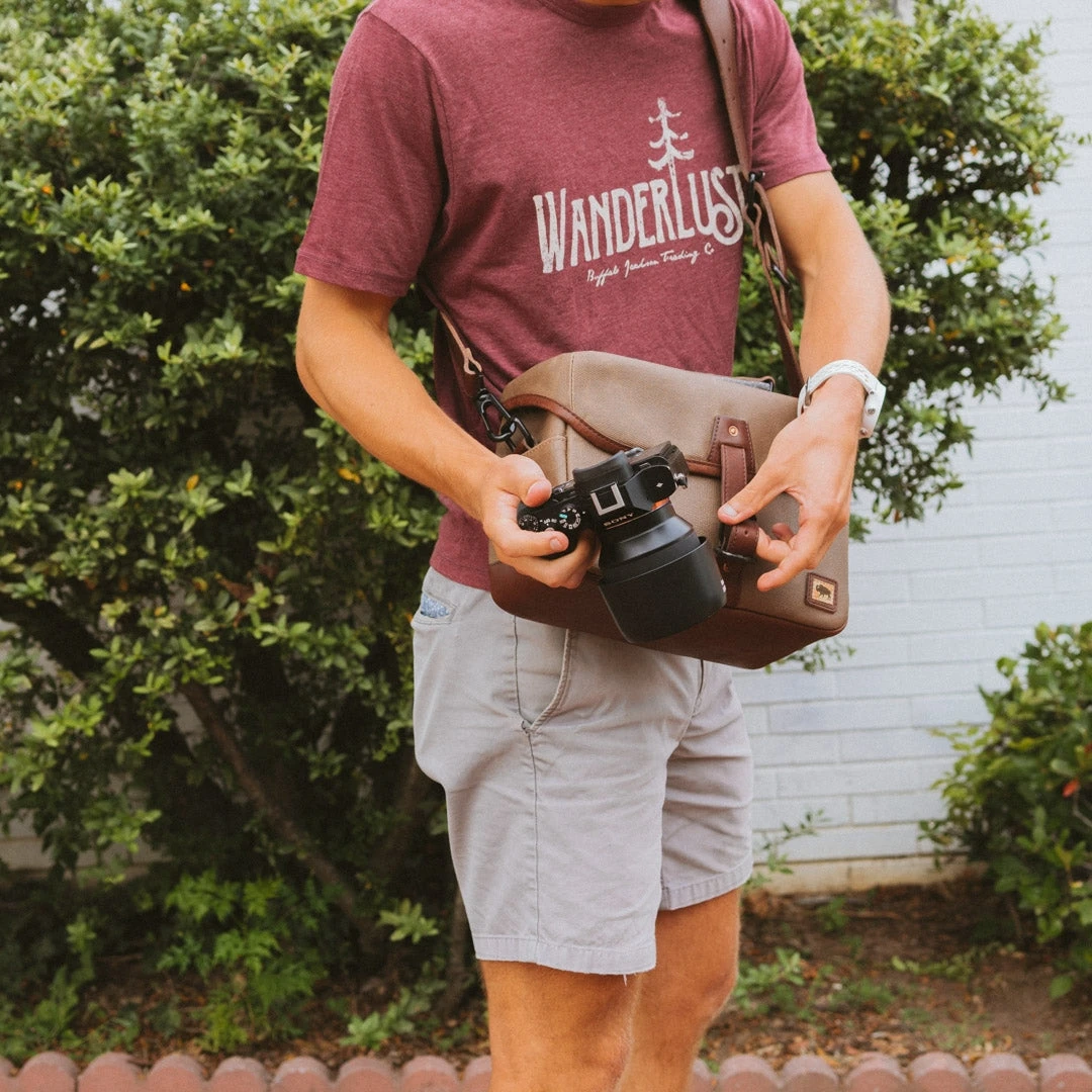 Buffalo Jackson Trading Co. Dakota Waxed Canvas Camera Bag | Field Khaki W/ Chestnut Brown Leather Outlet