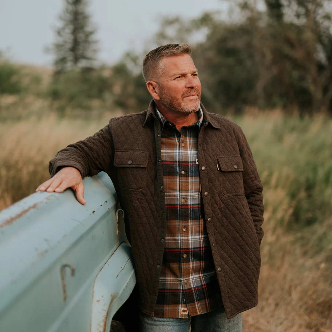 Dawn arrives, and you’re there to greet its early morning light. As the fresh-ground coffee simmers, you step onto the brisk cabin porch… adorning your Huntington Quilted Shirt Jac. Our 100% cotton shirt jacket is sure to be the midweight piece you find yourself grabbing off the door hook time and time again. The Huntington’s utility is matched only by its comfort and convenience, featuring a timeless quilted pattern complete with quick snap buttons and twin pockets at the side and chest. Whether you choose to wear it as a shirt or jacket, you can rest assured knowing the Huntington is stitched for warmth and relaxation from sunup to sundown.