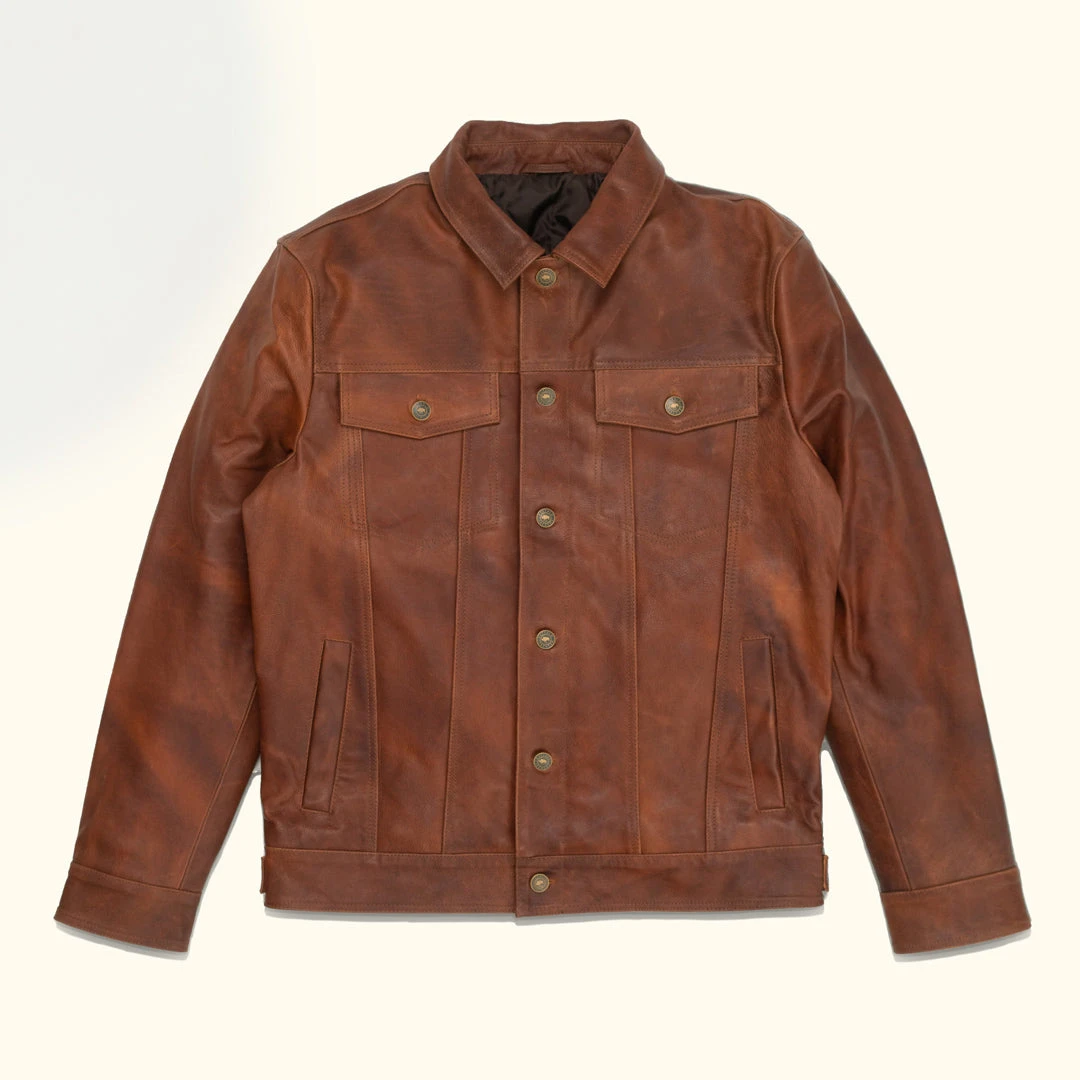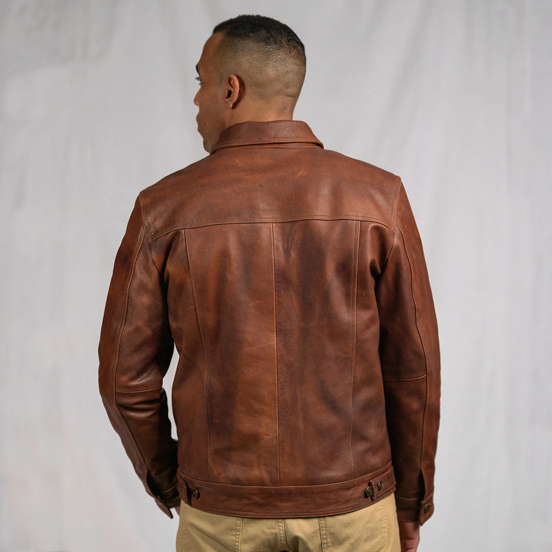 What do you get when you combine the iconic structure of a denim trucker jacket with the rugged class of a fine leather jacket? You get the Driggs Leather Jacket.
