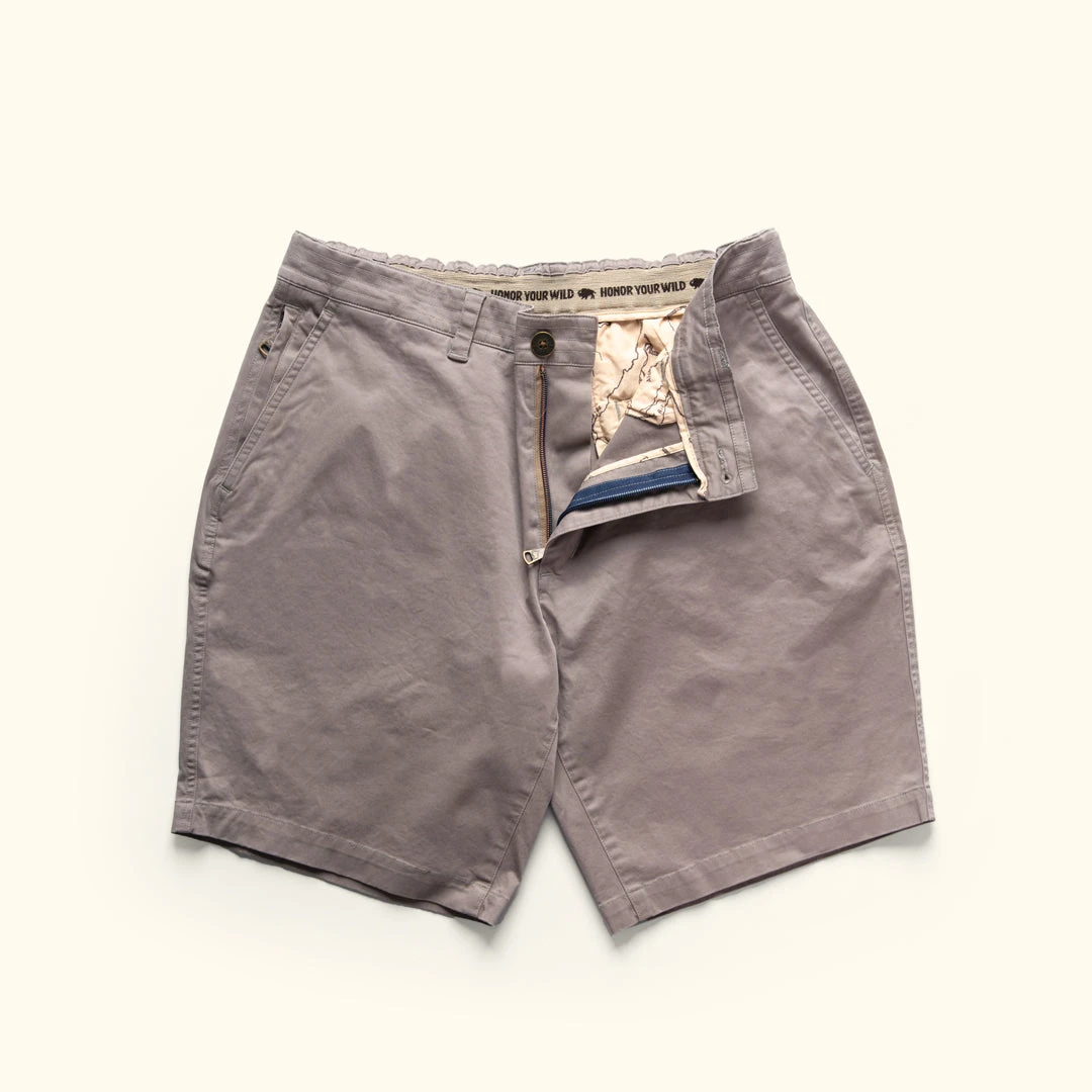 Made with a classic cotton blend, our Lobo Shorts are constructed with an elastic waistband for the perfect fit. Constructed with standard open pockets and hidden pockets in all the right places. Features a map of the Roosevelt river on interior fabric. Rests just above the knee with a 9” inch inseam.