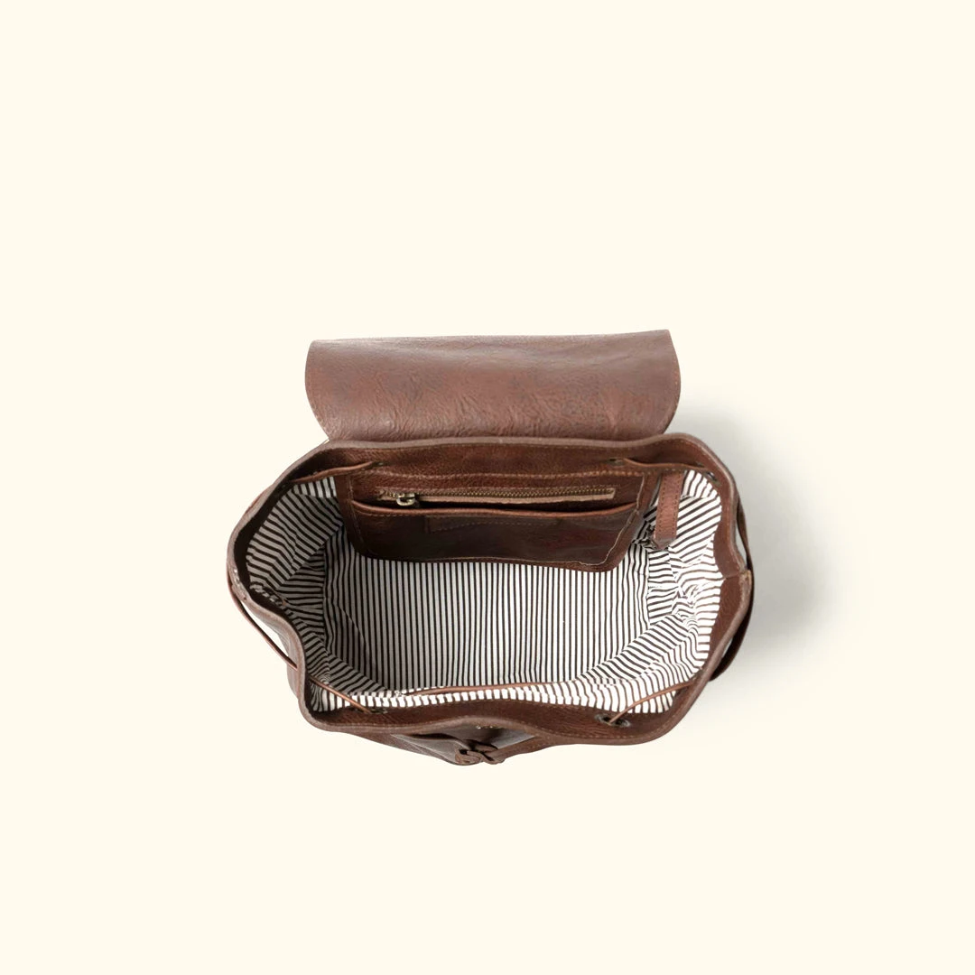 Challenge accepted. Offered in our standard Madison waxed canvas and leather color options, these backpacks may look small but they pack quite the punch. Inside you’ll find plenty of interior space accented by a leather hanging pocket to separate your keys and other small items, and most importantly, an easy access cell phone pocket. Outside everything is kept secure by a smooth leather drawstring and leather flap with magnet closure. This may not be the Eighth Wonder of the World, but it just may be the perfect companion to accompany you on any adventure.