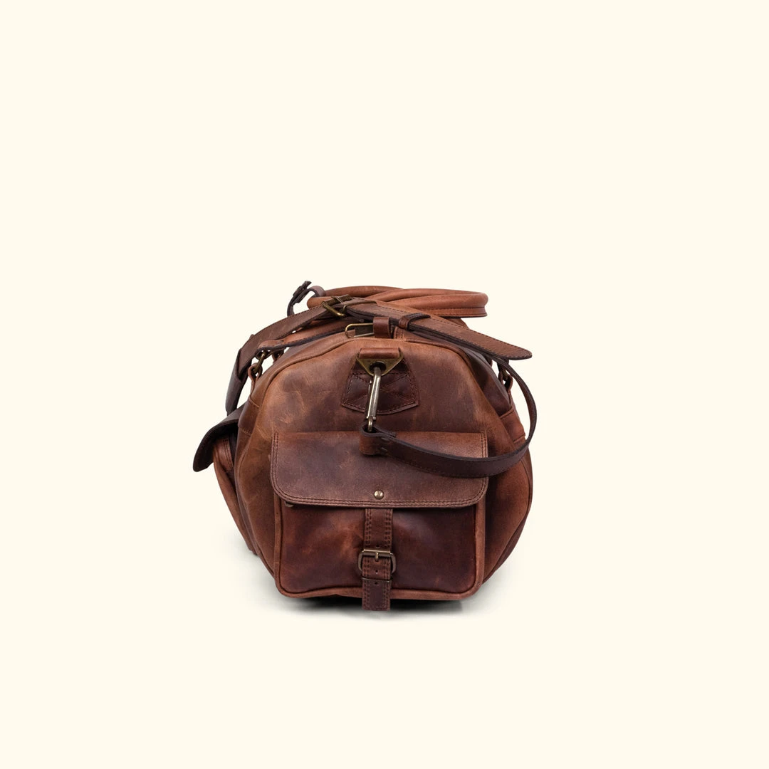 Buffalo Jackson Trading Co. Roosevelt Buffalo Leather Travel Duffle Bag | Amber BrownBuffalo Jackson Trading Co. Roosevelt Buffalo Leather Travel Duffle Bag | Amber Brown