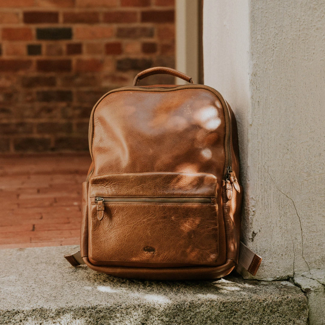 Buffalo Jackson Trading Co. Walker Leather Backpack | Rustic Tan Leather Travel Bags