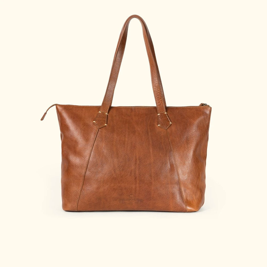 The Walker Tote is a women’s leather tote bag crafted of beautiful full grain leather with gorgeous stitching details. The 100% cotton-lined interior is generously spacious with a pocket for keeping your phone and keys handy. The full zip closure provides security while still giving you quick access to your bag’s contents. High quality craftsmanship and design keep this large tote surprisingly lightweight.